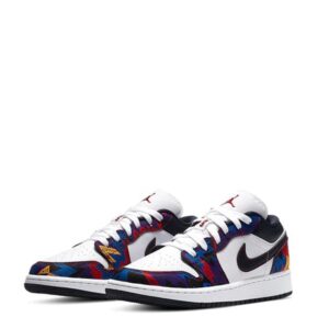 The Nike Air Jordan 1 Low โNothing But The Netโ is a bold and vibrant sneaker inspired by classic basketball graphics and MJโs iconic legacy. Known for its eye-catching multicolor woven-style panels, crisp white base, and sporty detailing, this pair delivers a perfect mix of retro hoops energy and streetwear attitude.