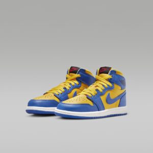 Game on! Inspired by MJ’s school days, this energetic colourway brings A* energy to the playground. Bold bursts of Game Royal and Varsity Maize let your little one join the team in style while subtly weathered leather ups the vintage appeal.